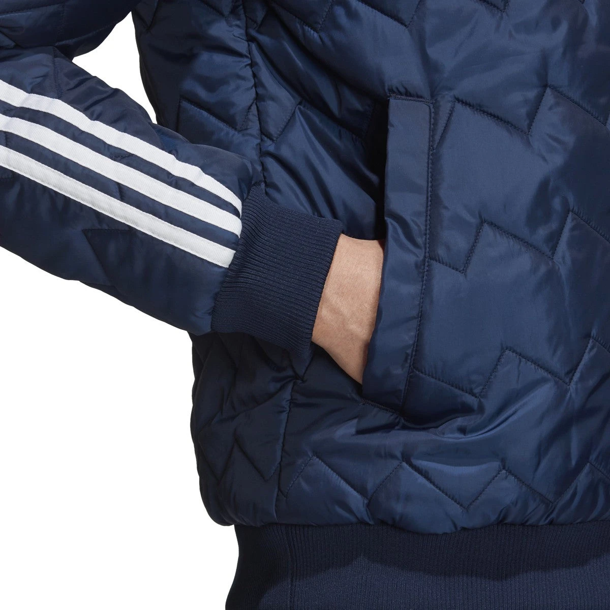 Branded with a contrasting Trefoil print at the chest, this quilted jacket from adidas is cut from recycled polyester this season. Secured with ribbed knits at the collar, cuffs and hem, this warming outer layer is kitted out with a pair of welt pockets and a two-way zipper secures the sporting look at the front and centre.