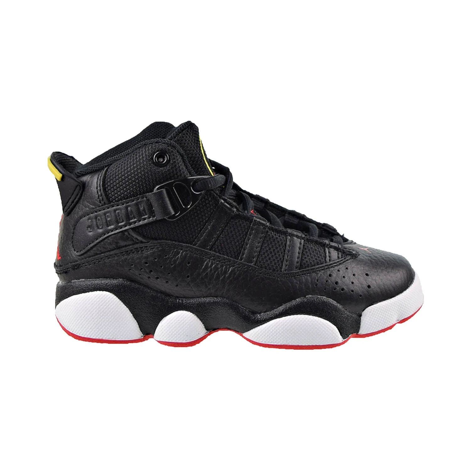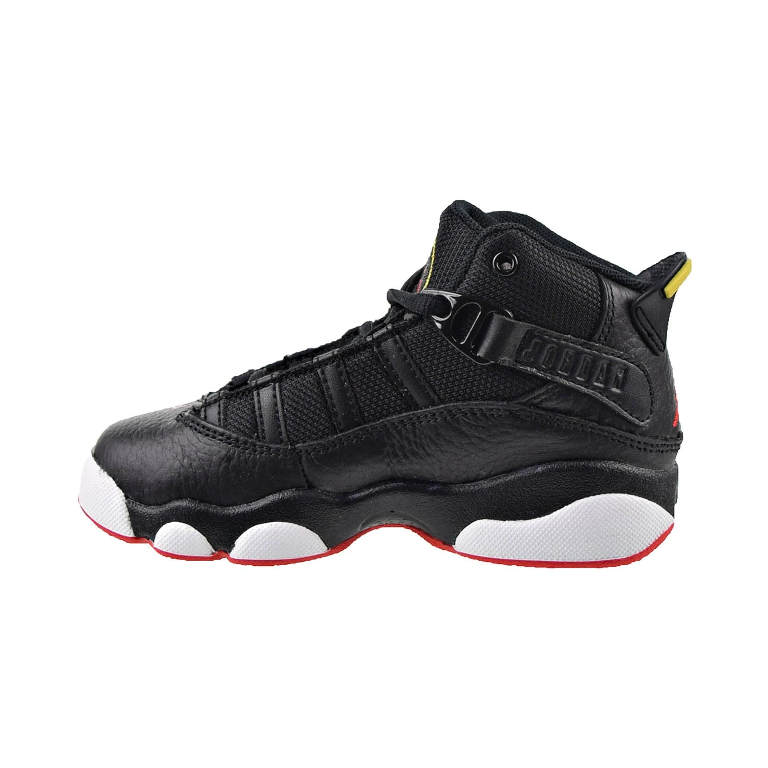 Your little baller can celebrate a legacy of flight when they wear the Little Kids’ Air Jordan 6 Rings Basketball Shoes. Comfortable cushioning, premium details and design elements inspired by years of Air Jordan models make these kicks a must-have.