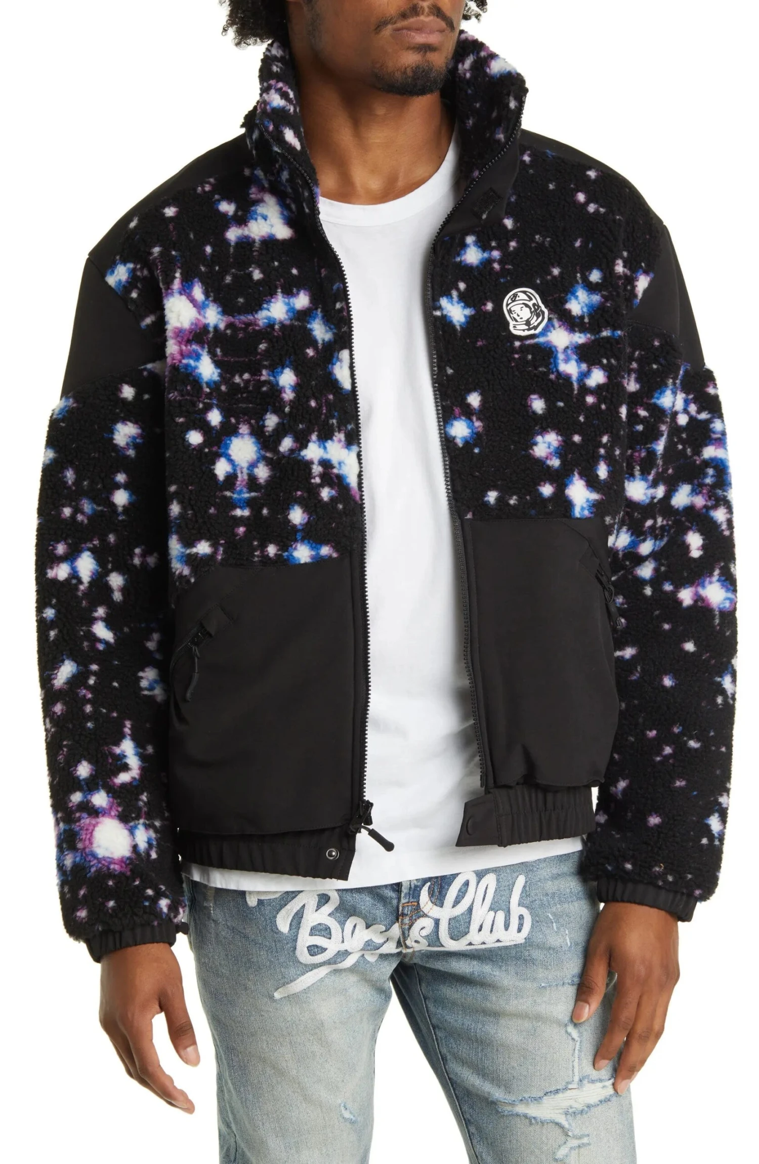 The Billionaire Boys Club BB Observatory Jacket is a must-have for any outerwear rotation. This garment is cut from breathable polyester fleece material and features contrasting nylon panels. Space-themed graphics and appliques are showcased throughout the jacket, while slanted pockets and a high collar complete the design.