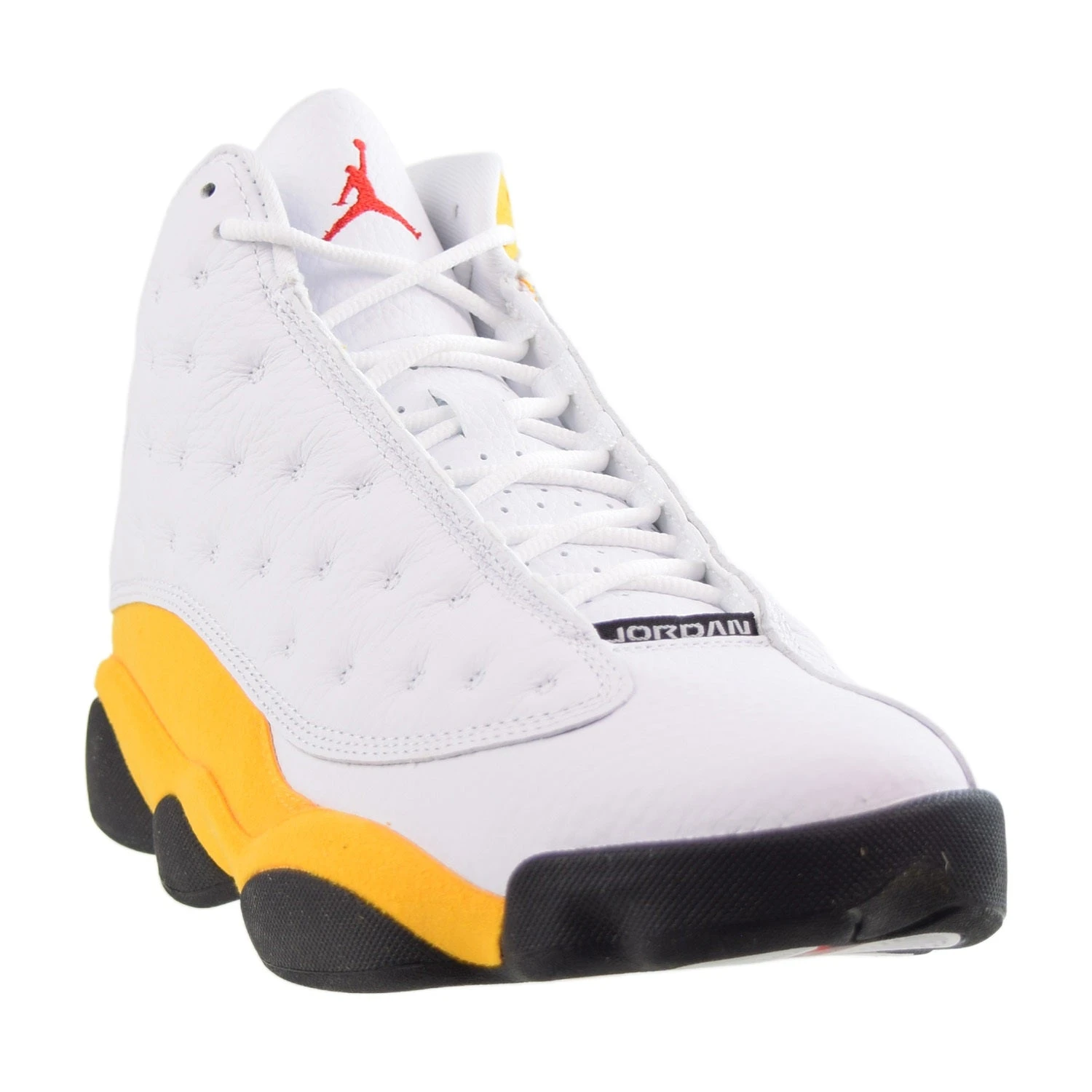 When the sun beams down, life can feel a bit brighter and lighter. Passing along those good rays, the ‘Del Sol’ Air Jordan 13 features a simple makeup with an original look and packaging. A Black outsole sets the stage for a premium White quilted leather upper accented by rich, colourful hits of ‘Del Sol’ suede. Bask in the sun and shine bright this spring with this newest Air Jordan 13 colourway.
