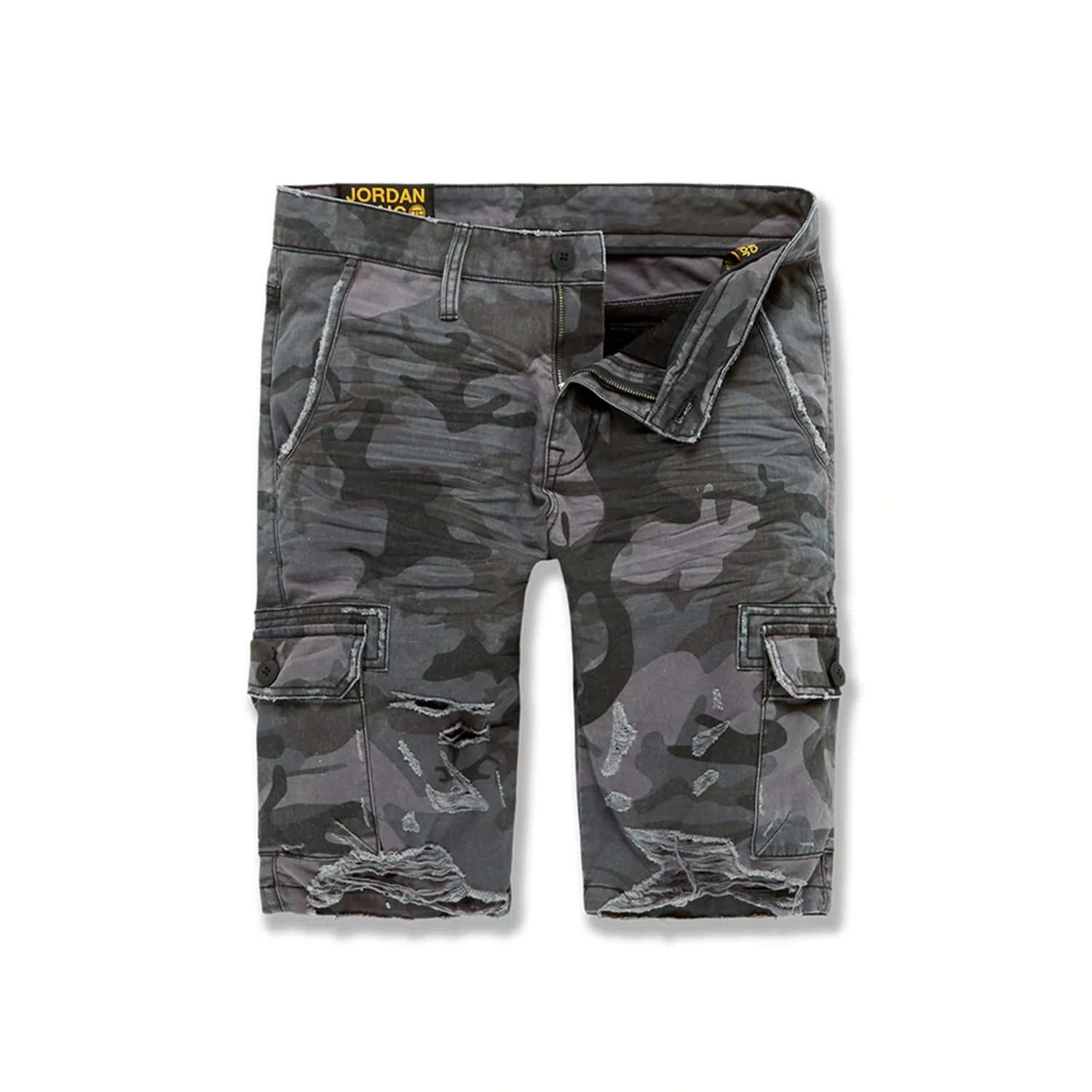 Jordan Craig Men’s War Torn Cargo Shorts Black Camo. Due to unique washing process, each garment will have it’s own individual look and may vary in color and tone