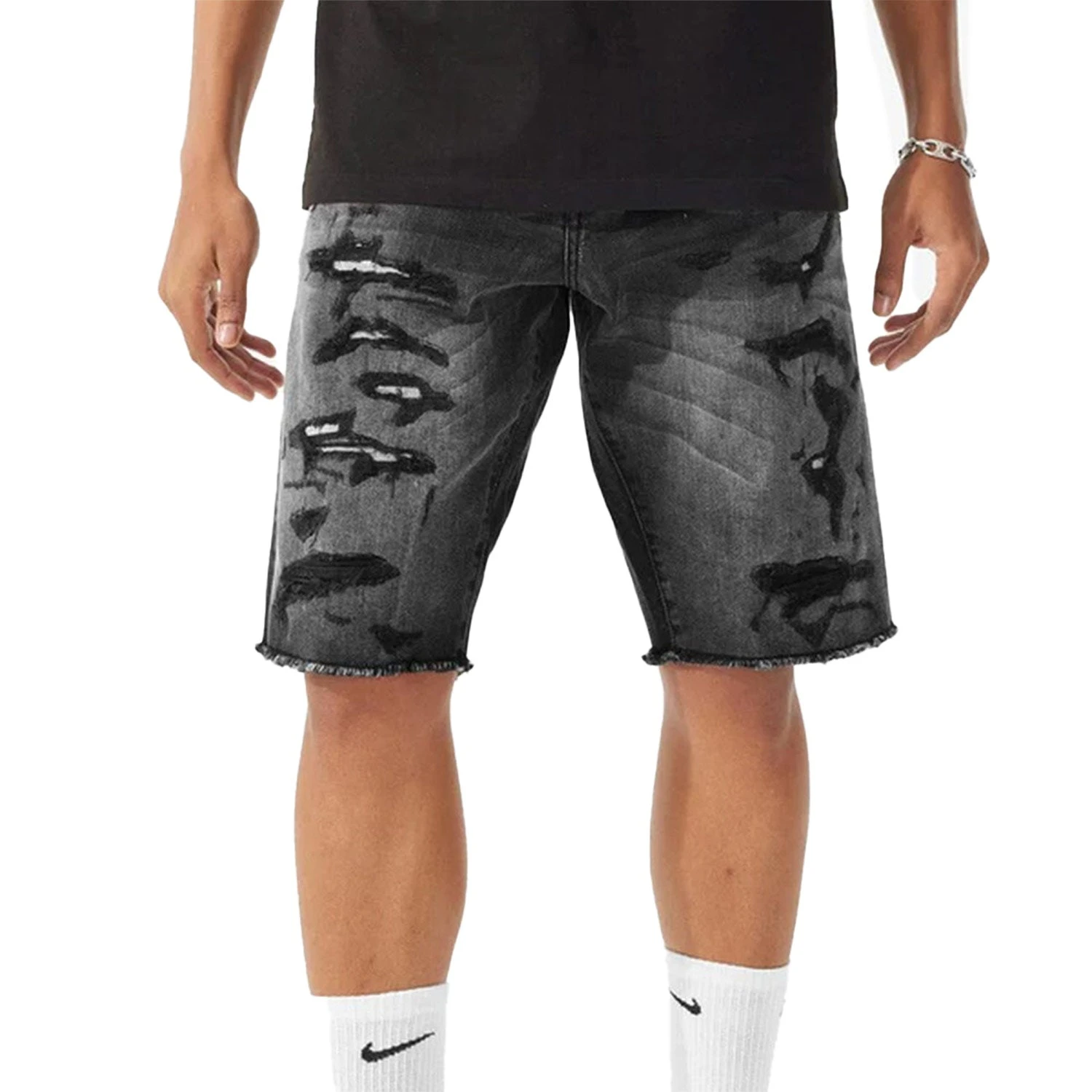 Jordan Craig Ripped Denim Men’s Shorts Black Shadow