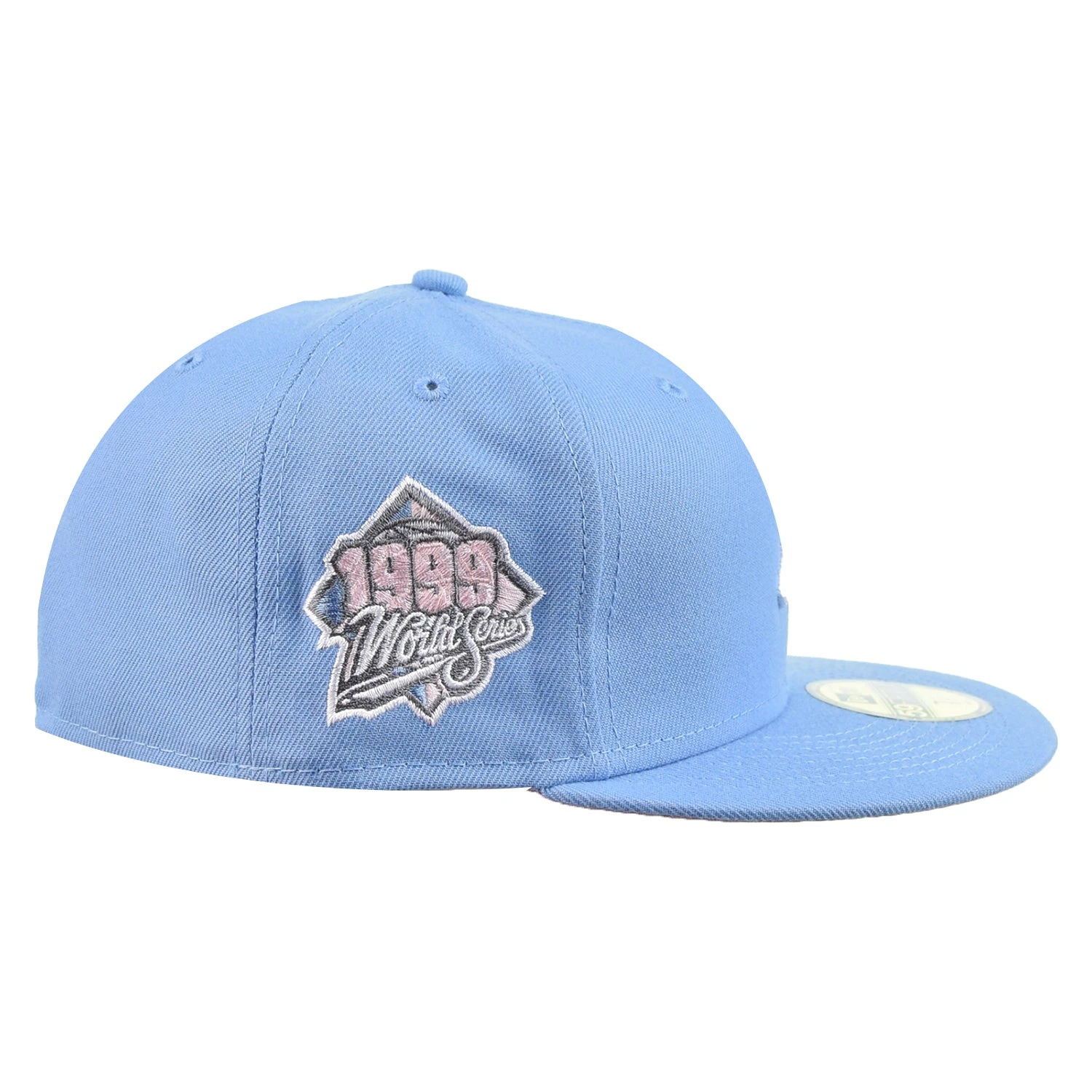 Take iconic Yankees style to the streets of your hometown with the official New Era New York Yankees MLB Pastel Sky Blue 59FIFTY Fitted Cap. Rendered in Sky Blue, the fitted crown features the team logo on the front, the MLB Batterman to the rear and a 1999 World Series graphic to the right. The cap’s flat visor helps you stay out of the sun and boasts a pink finish on the underside.