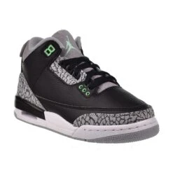 Jordan 3 Retro (GS) Big Kids’ Shoes Black-Wolf Grey-White-Green Glow