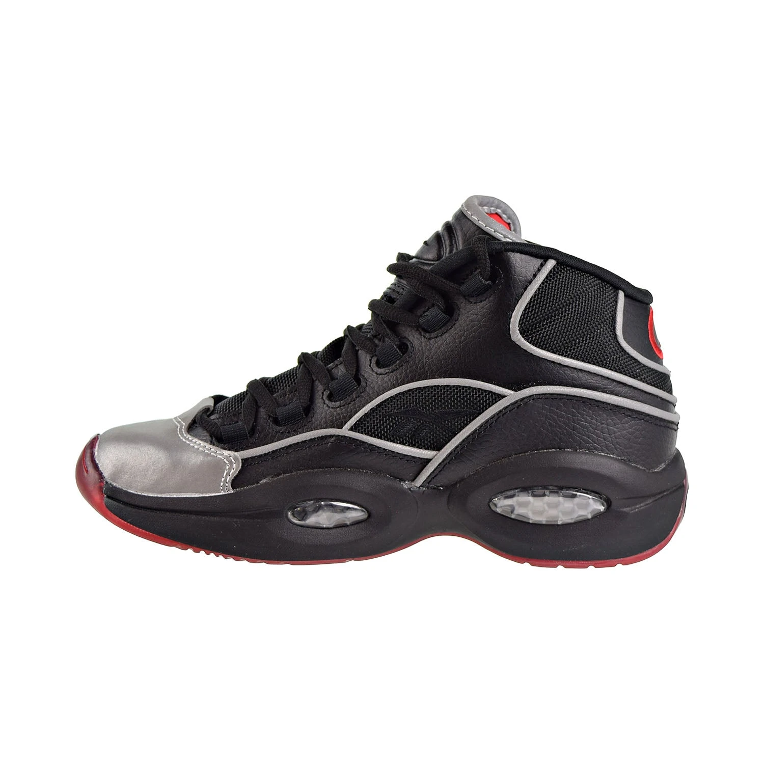 Stunt like a true OG in the Reebok x Jadakiss Kids’ Question Mid GS “A5” (BD4332), released 08/19/2016. These high-top kicks feature a black tumbled leather and ballistic nylon upper. The honeycomb-inspired Hexalite cushioning system will keep you owning the court in comfort, and the durable rubber outsole features a waved traction pattern for optimal surface grip.